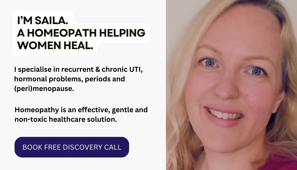 And of course, using homeopathic remedies to manage acute UTI episodes. The remedies are easy to use, and effective but gentle for your body. And without unwanted side effects!
